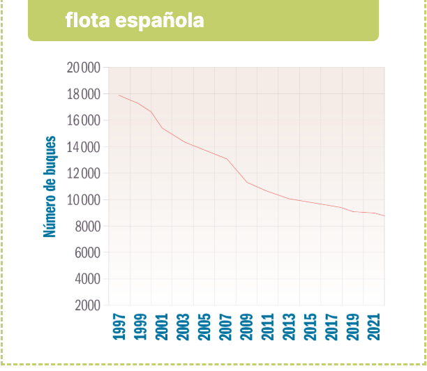 1. La flota ha experimentado una enorme transformación y hoy se halla en la vanguardia de las tecnologías en lo que se refiere a sistemas de navegación, adelantos náuticos, etc. Algunos buques son auténticas factorías; coexiste, no obstante, con una flota tradicional de bajura, cuya actividad resulta cada vez más difícil por su falta de competitividad y por lo esquilmado de nuestros mares.